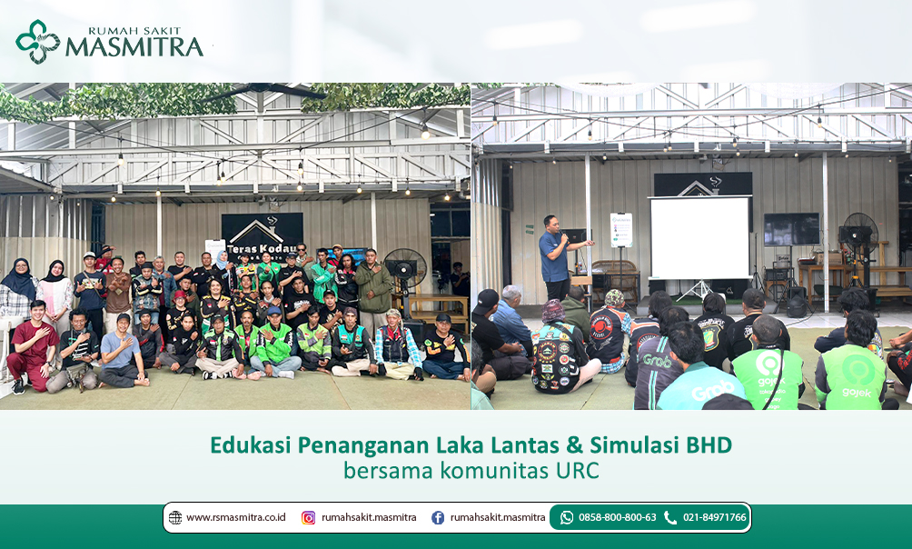 Pada Sabtu, 4 Oktober 2025, Rumah Sakit Masmitra mengadakan kegiatan Edukasi Penanganan Kecelakaan Lalu Lintas dan Simulasi Bantuan Hidup Dasar (BHD) bersama komunitas URC (Unit Reaksi Cepat). Acara ini berlangsung di Teras Kodau, diikuti oleh puluhan peserta dari berbagai komunitas ojek online dan relawan tanggap darurat.